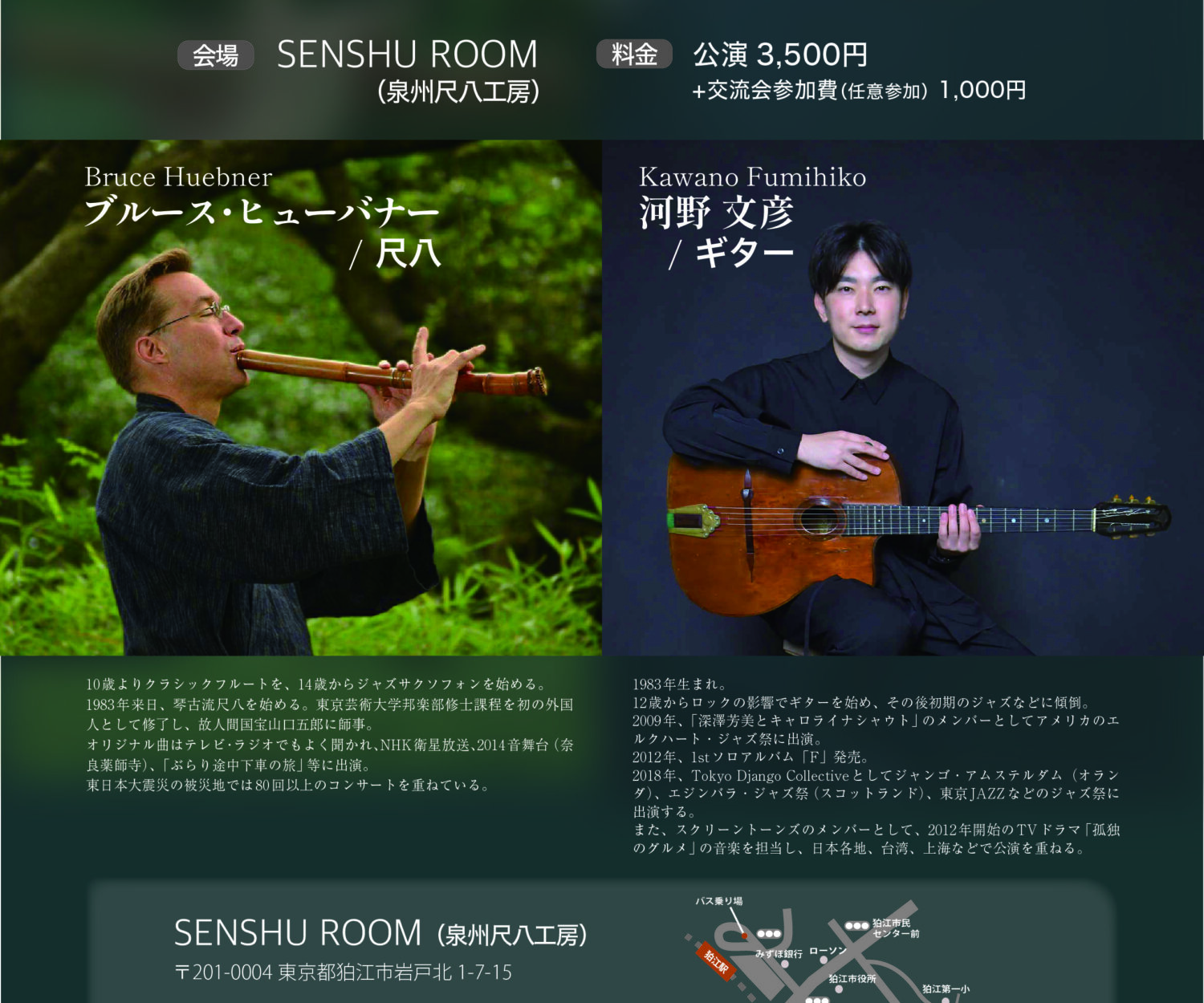 News 25 11月 2025 ブルース・ヒューバナー尺八Jazz LIVE 泉州尺八工房Roomがら、Liveのお知らせです。 12月6日(土) 泉州尺八工房主催 「Bruce Huebner 尺八 JAZZ LIVE」 【LIVE詳細】 日時:2025年12月6日(土) 開演14:30(開場14:00) 料金:3,500円(お一人につき) 会場:泉州尺八工房 Room スタンダードジャズを中心にしたわかりやすいライブです。 是非ご参加ください、 三塚