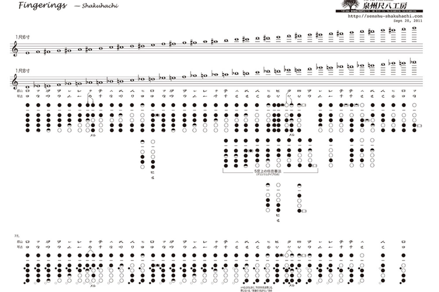 尺八の指使いはいろいろありますが、標準的な尺八指使い表を公開します。